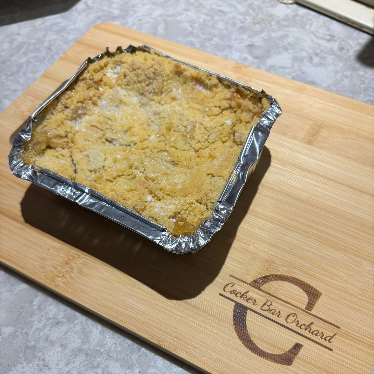 A single portion of our delicious Apple Crumble. Best served warm with custard or ice cream.